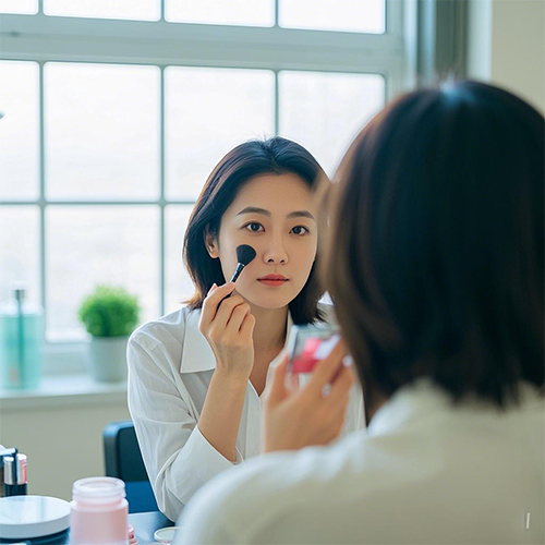 干燥的肌膚即使涂上好幾層粉底,還是無法修飾肌膚細(xì)紋。沈陽化妝學(xué)校建議補(bǔ)妝前,先使用保濕噴霧或眼霜,給予肌膚濕潤度,接著噴些保濕霧于粉撲上后再沾取粉餅,此法能讓粉底與肌膚更加服貼融合,還能避免越補(bǔ)粉越厚的困擾。使用這個技巧,不管是干燥肌膚還是皺紋,都可以粉底擦得很自然,妝也會畫得很漂亮。