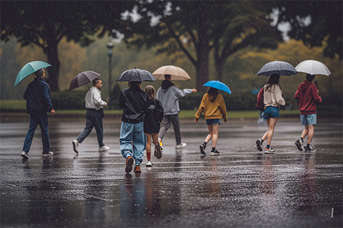 傾盆大雨看起來很好,但加入了“為生活而奔波”的人就會更有人情味。