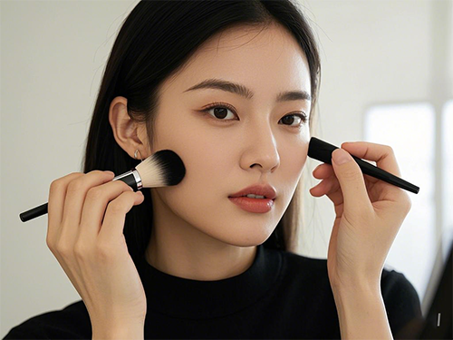 用手指來上粉底液,輕重的拿捏能讓妝感更均勻,但如果你想要完美無瑕的妝感,就使用刷子,不過刷子就會容易顯得有厚重的妝感。