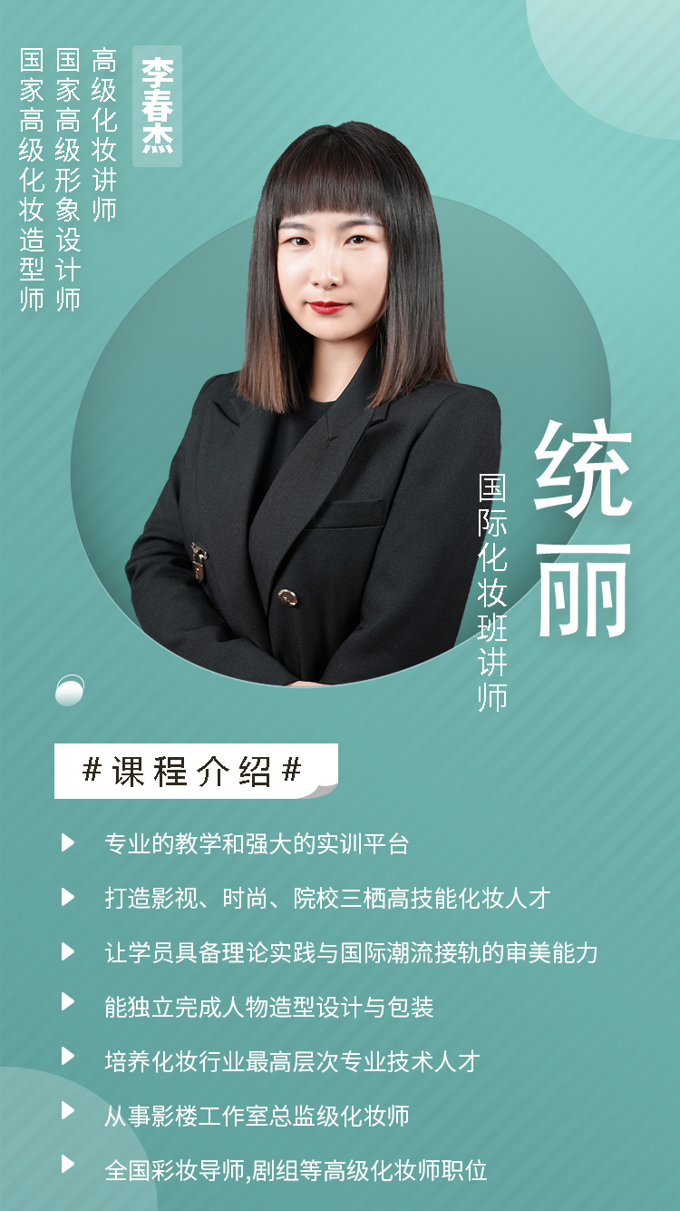 畢業(yè)中分配到各大,中型影樓電視臺,影視劇組,各種時尚雜志及各大化妝院校從事整體形象設計及講師工作,自營形象設計,影樓及工作室。