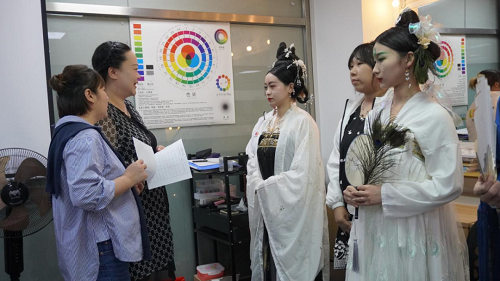 本次蒞臨比賽現(xiàn)場的領(lǐng)導(dǎo)有:統(tǒng)麗學(xué)校郭校長、副校長姚娟、化妝系主任兼高彩一班班主任高元元老師、國際化妝班春杰老師、時尚造型班小美老師、紋繡班菲菲老師、美容系主任陳曉兵老師、校長助理苗巧巧。