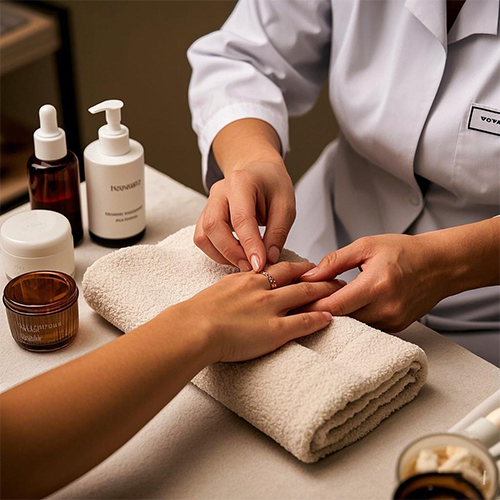 將適量的橄欖油倒入熱水中,然后將手掌完全浸泡,10分鐘后,讓角質(zhì)變得柔軟。然后,用專用的去角質(zhì)產(chǎn)品,在整個手掌和手腕上輕輕地按摩,特別是那些容易長出硬皮和倒刺的地方。