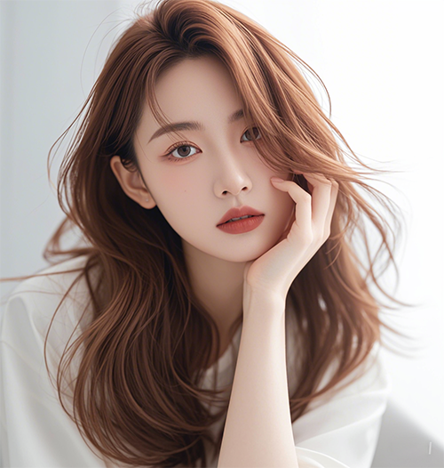 尤其是中分的長發(fā),長度在下巴之上,可以強調(diào)下顎的弧度,使臉看上去更長更小。