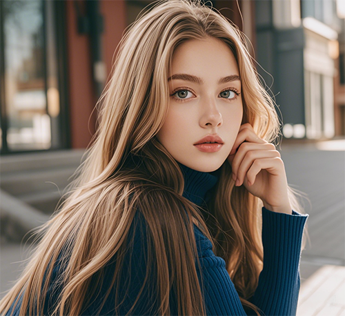 這樣的偏分,可以柔化臉部線條,并且因為其不對稱性使得臉部看上去不那么圓了。