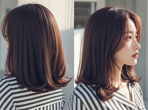 2、很清純感的一款中長(zhǎng)發(fā),不長(zhǎng)也不短,長(zhǎng)度特別的適中,層次感很強(qiáng),簡(jiǎn)單又高級(jí)感,如果你已經(jīng)厭倦了卷發(fā),那就不妨試試這款發(fā)型吧。