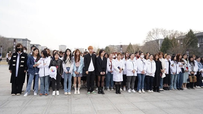 化妝系的同學們比較多,看了打樣的美容系同學也不甘示弱,在老師的引導下也把口號喊出了氣勢: