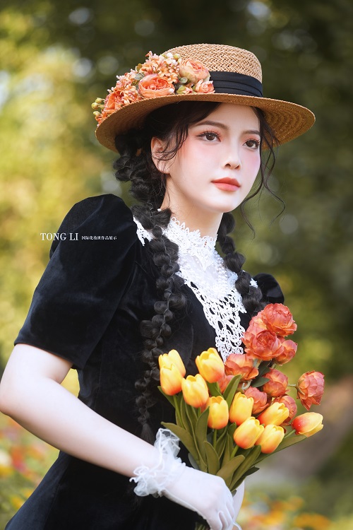 搭配經(jīng)典小草帽和鮮花盡顯