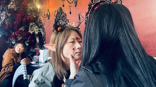 她們精湛的化妝技巧,將平凡的面龐變成了猙獰可怖的怪物,生動(dòng)地展現(xiàn)了萬(wàn)圣節(jié)的恐怖氛圍。她們通過(guò)精細(xì)的線(xiàn)條勾勒和逼真的妝容,他們讓參觀的游客們無(wú)不驚嘆不已。無(wú)論是猙獰可怖的面部妝容,還是絢麗多彩的特殊效果妝容,都讓人們仿佛置身于奇幻世界中。