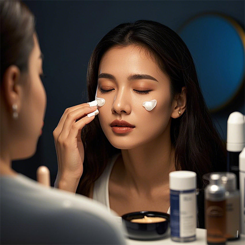抹上粉底之后發(fā)現(xiàn)臉上起皮,不妨給臉部加一層“水膜”來進(jìn)行補(bǔ)救吧!取一點(diǎn)保濕霜或是其他霜狀的護(hù)膚品,輕輕印在臉上起皮的地方,注意用量以及不能用力擦拭哦,否則底妝就不均勻了,只要輕輕按壓印上即可。這樣一來,臉上起皮的情況就能馬上得到緩解啦!之后,也可以再次噴上保濕噴霧,這樣能起到保濕定妝的作用。