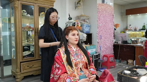 在五月的沈陽,春風(fēng)和煦,陽光灑滿大地,仿佛在為一場(chǎng)盛大的婚禮預(yù)熱。5月22日這一天,沈陽故宮南廣場(chǎng)上,鑼鼓喧天,彩旗飄揚(yáng),沈陽市暨沈河區(qū)第三屆國(guó)風(fēng)集體婚禮在這里隆重舉行。百名新人將在這里舉行一場(chǎng)別開生面的婚禮,不僅展現(xiàn)了傳統(tǒng)文化的魅力,更成為了沈陽市方城文化旅游區(qū)中一道亮麗的風(fēng)景線。我們學(xué)校很榮幸成為了此次活動(dòng)協(xié)辦單位中的一員,負(fù)責(zé)新人們的化妝工作。
