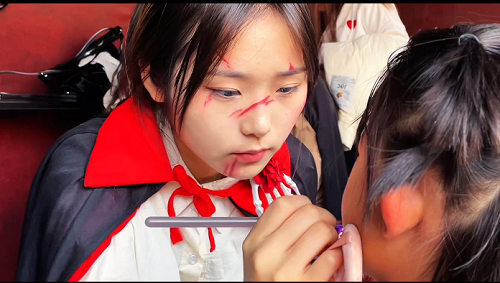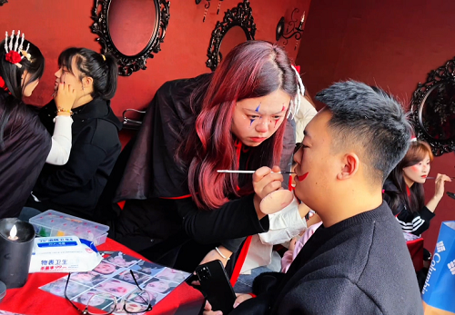 劉芯帆老師很專業(yè),也特別有激情。她就像一盞很亮的燈,給學(xué)生指引著路呢。她特別喜歡化妝藝術(shù),對學(xué)生們的期望也可高了。她認(rèn)真地組織大家參加方特萬圣節(jié)化妝實習(xí)。實習(xí)前,她又是動員學(xué)生,又是仔細(xì)地分任務(wù),什么事兒都考慮到了,就是想讓學(xué)生們在這個特別的時候好好鍛煉,快點成長。