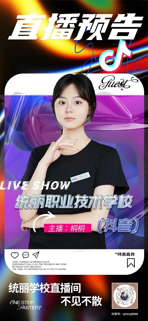 直播平臺及賬號:抖音統(tǒng)麗職業(yè)技術學校
