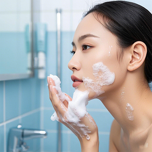用洗面奶洗臉后,一定要徹底沖洗干凈殘留的洗面奶,尤其是發(fā)際線、鼻子兩側(cè)、下巴、耳朵等容易被忽略的位置, 否則會出現(xiàn)毛孔堵塞、皮膚干燥甚至過敏等問題。