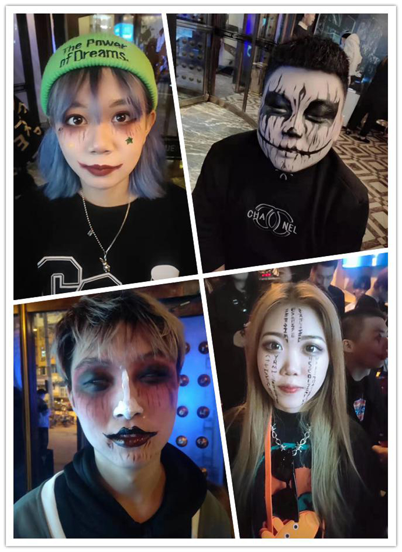 時尚造型班精湛的化妝造型技術(shù),給此次狂歡派對平添無數(shù)亮點,是活動得以順利舉行、眾人得以盡情狂歡的最大功臣?!皧y面簡直太逼真了”、“從沒有參加過這么刺激的萬圣派對”、“真的見了鬼啦”...每個人都情不自禁地為統(tǒng)麗人點贊!