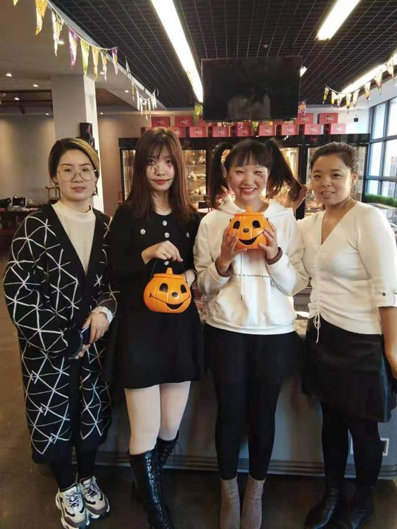 助妝對(duì)象是“老熟人”,參與派對(duì)的人數(shù)也不似商業(yè)活動(dòng)那樣多,因此這一次的助妝活動(dòng)壓力并不算大。即便如此,私人訂制班師生依舊沒有絲毫松懈,用精湛的化妝技術(shù)、飽滿的熱情和服務(wù)態(tài)度,為此次萬圣街派對(duì)打造出了一個(gè)個(gè)逼真可怖的“鬼面”,讓派對(duì)高溫不下,讓參加派對(duì)的麗德爾領(lǐng)導(dǎo)和員工在神秘詭異的氣氛下集體“鬼混”。