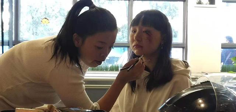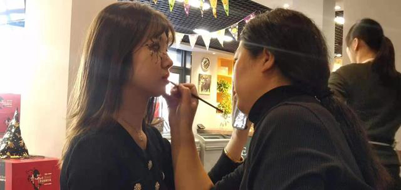 11月1日,正值西方傳統(tǒng)節(jié)日萬圣節(jié),麗德爾公司借機(jī)舉辦萬圣節(jié)派對(duì)。這種重要活動(dòng),統(tǒng)麗學(xué)校自然不會(huì)被忘記,在麗德爾公司領(lǐng)導(dǎo)的邀請(qǐng)下,劉芯帆老師帶領(lǐng)私人訂制班學(xué)員,冒著清晨的寒冷趕往現(xiàn)場(chǎng)為活動(dòng)提供助妝服務(wù)。