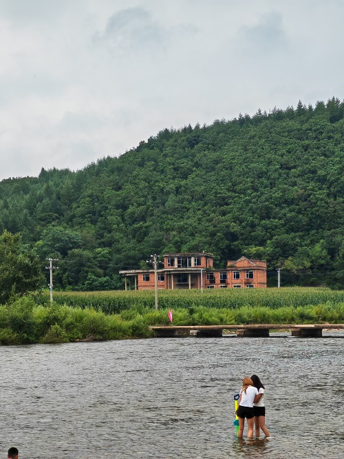 “沖??!”不知是誰(shuí)喊了一聲,學(xué)生們紛紛脫了鞋,赤腳踩進(jìn)溪水里。冰涼的溪水漫過(guò)腳踝,瞬間驅(qū)散了夏日的燥熱,有人互相潑著水,水珠在陽(yáng)光下閃著光;有人蹲在水里摸石子,想找出最光滑的那一顆;還有人沿著溪邊追跑,笑聲驚起了幾只停在石頭上的蜻蜓。老師們也沒(méi)閑著,有的站在岸邊給大家拍照,有的干脆也加入了“戰(zhàn)局”,被學(xué)生們潑得滿身是水,卻笑得像個(gè)孩子。山澗的流水聲、此起彼伏的歡笑聲,交織成最治愈的旋律。
