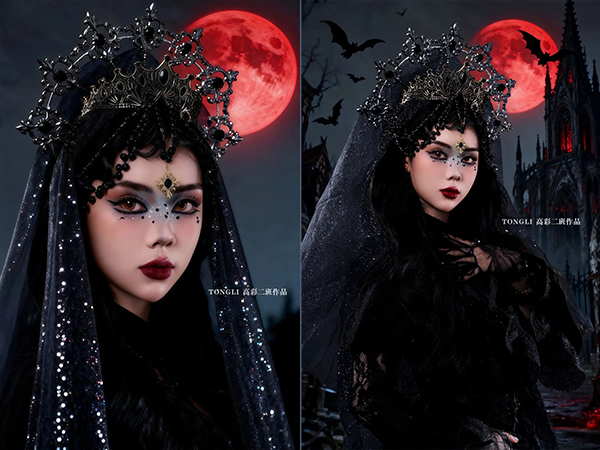 深邃的眼妝藏著凌厲氣場,復(fù)古的黑紗映著冷艷輪廓,每一個哥特風(fēng)造型都像從暗黑童話里走出的主角,讓人一眼淪陷。細(xì)節(jié)控更能在這些作品里發(fā)現(xiàn) “極致美學(xué)”:不同于大眾對哥特風(fēng) “只重暗黑” 的刻板印象,統(tǒng)麗學(xué)員的妝造在暗黑基調(diào)里精準(zhǔn)平衡華麗感 —— 打底時避免膚色過于慘白,貼合真實(shí)膚質(zhì);眼妝層次經(jīng)過反復(fù)暈染,每一筆都精準(zhǔn)勾勒輪廓;飾品與妝面的搭配更是經(jīng)過多次調(diào)整,就連黑紗的垂墜角度都反復(fù)打磨。這份對細(xì)節(jié)的執(zhí)著,正是統(tǒng)麗作為沈陽化妝學(xué)校,將 “極致美學(xué)” 融入教學(xué)細(xì)節(jié)的證明。