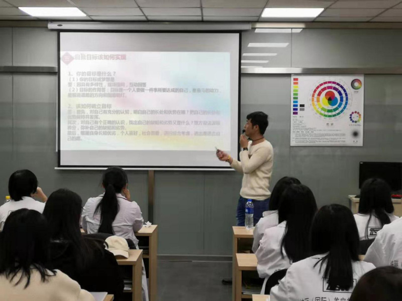此次分享會上,梁慧清同學帶來了自己精心制作的主題課件——自我提升與管理,分享的內(nèi)容包括了知識的重要性、學習的重要性、學歷的重要性、自我管理的重要性等一系列相輔相成的知識點。為分享會做了精心準備的梁慧清,還精挑細選了很多與主題相關(guān)的生動案例,并用生動、詼諧的語言與同學們分享了自己的所見、所聞、所想。高彩2班其他學員用仔細聆聽、積極互動、認真筆記的方式,回應(yīng)梁慧清同學的努力,而王思瑤老師和前來觀摩分享會的國際化妝班講師李春杰老師,也在臺下認真地旁聽,并對梁慧清同學做出的努力表示了肯定和贊賞。
