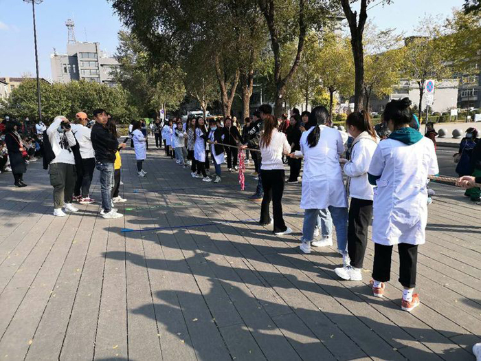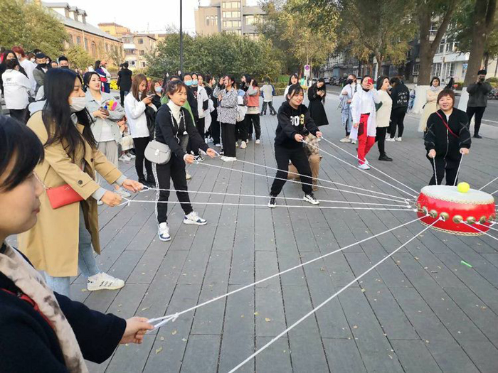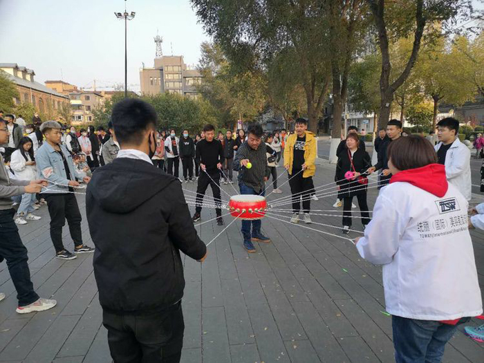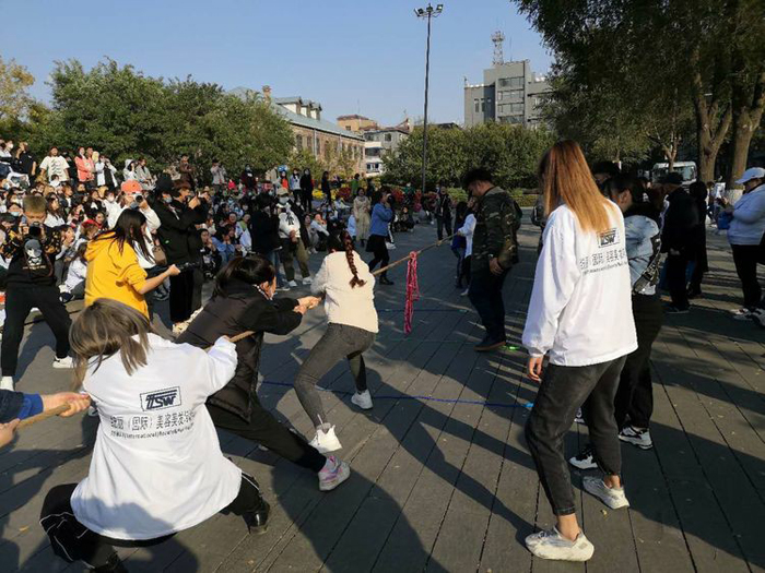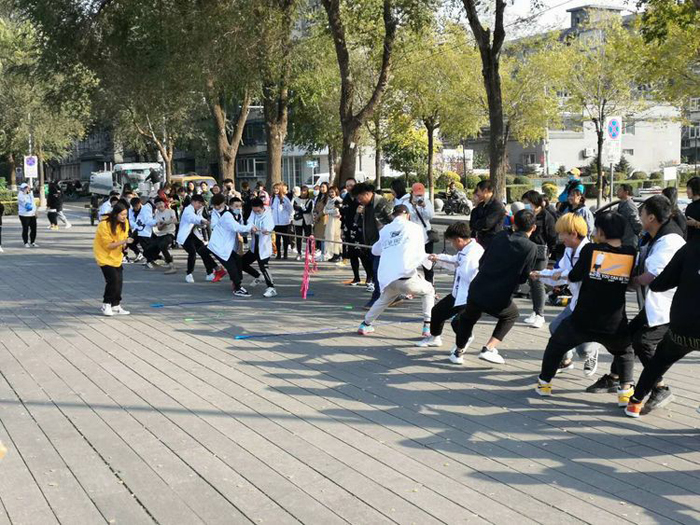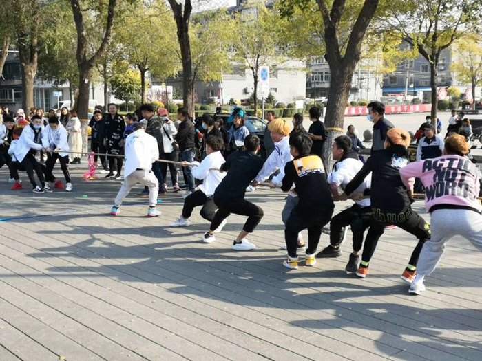 在穆鵬老師的宣布下,趣味運(yùn)動會角逐開始。根據(jù)安排,此次運(yùn)動會的比賽共有五個兼具競技性、技巧性和趣味性的項目,對團(tuán)隊協(xié)作能力和個人身體素質(zhì)都是比較強(qiáng)的考驗(yàn)。在如沸的助威吶喊和歡笑中,統(tǒng)麗學(xué)員以班級或?qū)I(yè)為單位,先后進(jìn)行了拔河、四人五足、轉(zhuǎn)布條、呼啦圈接力和同心擊鼓等比賽,無論場內(nèi)參加比賽的,還是場外吶喊助威的,統(tǒng)麗師生無不神采飛揚(yáng)、激情澎湃,周邊駐足觀看的男女老少,臉上也都洋溢著開心的笑容。
