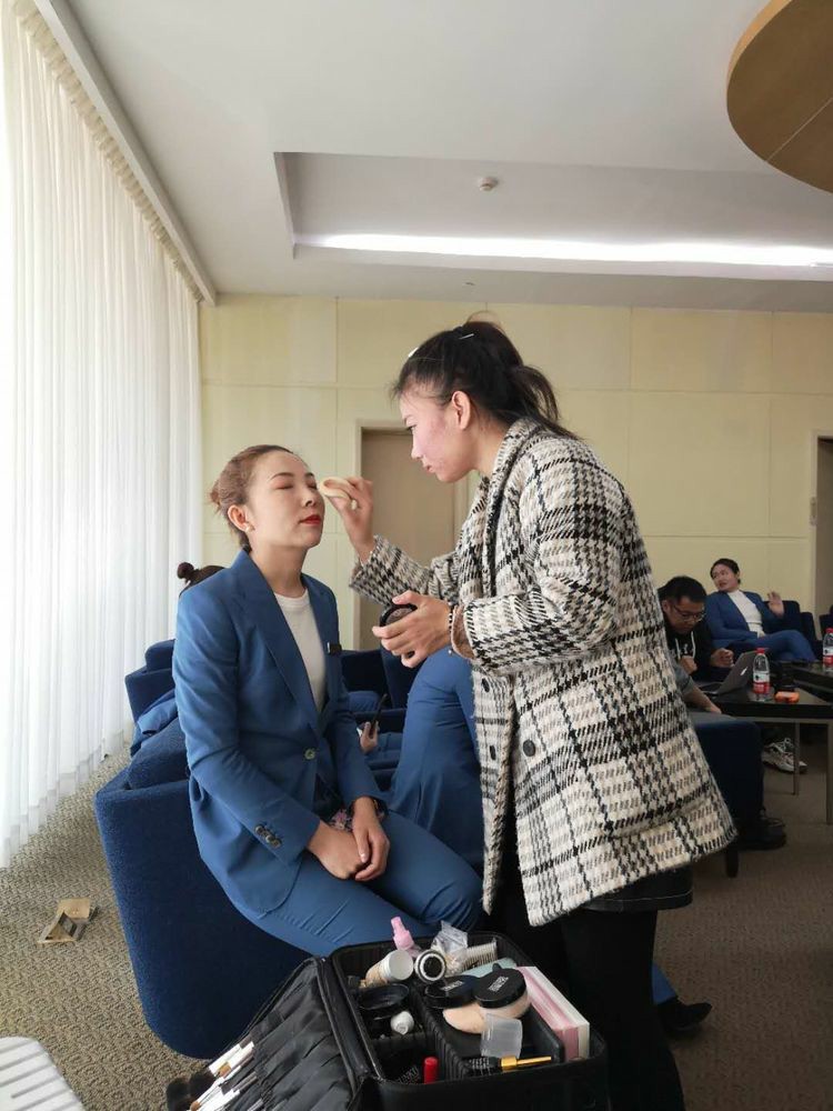 劉芯帆老師和她的私人訂制班,便是統(tǒng)麗學(xué)校社會實踐領(lǐng)域的骨干力量。10月27日,在劉老師的組織下,私人訂制班數(shù)名精英學(xué)員前往某地產(chǎn)公司,為其在“友誼劇場”舉辦的團建以及優(yōu)秀員工拍攝形象照活動提供助妝相關(guān)的美業(yè)技術(shù)支持和服務(wù)。