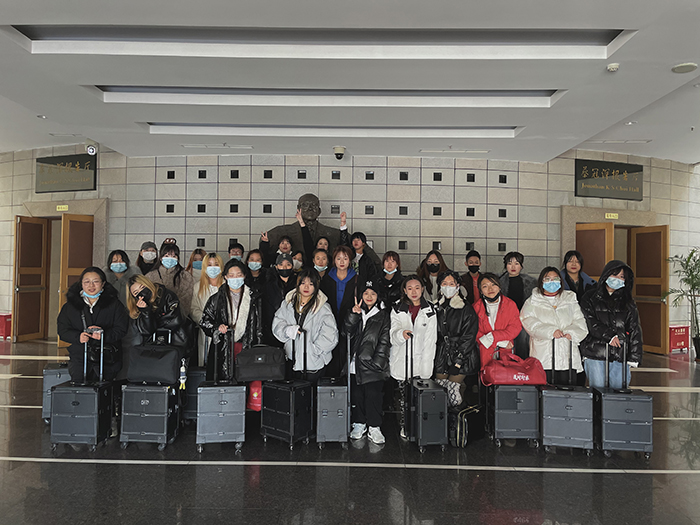 在李春杰老師的協(xié)調(diào)和指導(dǎo)下,國(guó)際化妝班的學(xué)員一大早便趕往東北大學(xué)南湖校區(qū),她們克服了天氣寒冷、化妝場(chǎng)地相對(duì)狹小簡(jiǎn)陋、上妝人數(shù)眾多且?jiàn)y面要求高的眾多現(xiàn)實(shí)困難,打起精神施展所學(xué),用精湛的技藝、熱情的態(tài)度和年輕人特有的朝氣,贏得了參演人員和活動(dòng)組委會(huì)的一致好評(píng),展示了統(tǒng)麗人在化妝、造型、發(fā)式設(shè)計(jì)、服裝配飾等方面的精深功底,以及無(wú)私奉獻(xiàn)精神和正能量,為此次文化節(jié)和晚會(huì)的順利舉行提供了不可或缺的技術(shù)支持,又一次為統(tǒng)麗社會(huì)實(shí)踐實(shí)習(xí)路線做出完美的注解!
