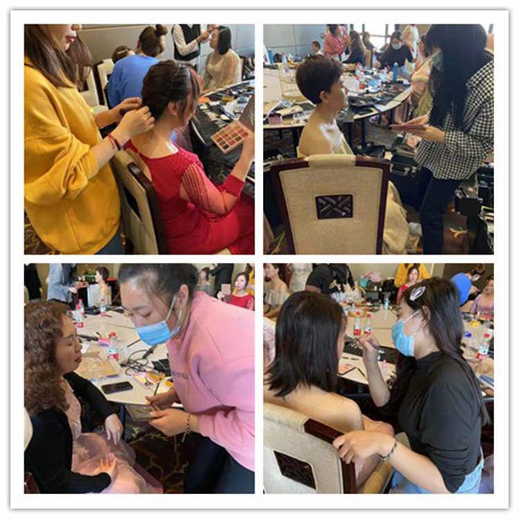 近一周時(shí)間,統(tǒng)麗化妝專(zhuān)業(yè)“火力全開(kāi)”,積極對(duì)接多個(gè)社會(huì)和商家活動(dòng),組織了總數(shù)上百人次的助妝。國(guó)際化妝班首先為遼寧電視臺(tái)少兒春晚的錄制提供了助妝服務(wù),并參加了相關(guān)節(jié)目的彩排活動(dòng);高彩2班學(xué)員則在王思瑤老師的組織下,前往沈河區(qū)少年宮,為在那里舉行的“少兒教育成果展示晚會(huì)”提供了美業(yè)技術(shù)服務(wù),為數(shù)十名可愛(ài)的小天使助妝;李小美老師的時(shí)尚造型班則受某美容院之邀,為一場(chǎng)別開(kāi)生面的企業(yè)內(nèi)部晚會(huì)提供美業(yè)技術(shù)支持。