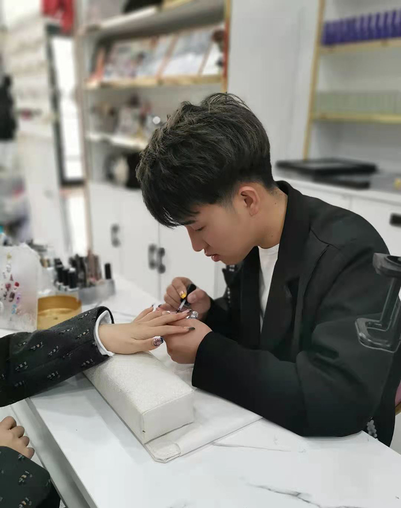 根據(jù)晏來(lái)同學(xué)的說(shuō)法,他一開(kāi)始?jí)焊鶝](méi)有考慮走美業(yè)這條路?!皬膶W(xué)校畢業(yè)后,按照自己和家人的規(guī)劃,我本來(lái)想走繪畫(huà)這條路的,因?yàn)槲覐男【拖矚g繪畫(huà),還進(jìn)行過(guò)專門(mén)的培訓(xùn)?,F(xiàn)在我成為了一名美甲師,雖然專業(yè)大相徑庭,不過(guò)美甲技能本身也包含著款式和圖案的設(shè)計(jì)以及繪畫(huà)過(guò)程,所以我的繪畫(huà)功底恰好派上了用場(chǎng)。現(xiàn)在我每天都會(huì)抽時(shí)間精進(jìn)自己的美甲技術(shù)和設(shè)計(jì)能力,比如在網(wǎng)上或者書(shū)籍里尋找合適的美甲圖案或者靈感,融合自己所學(xué)的知識(shí),設(shè)計(jì)出獨(dú)特的、顧客喜歡的美甲款式。我認(rèn)為,這是一名美甲師必備的自強(qiáng)意識(shí)?!?