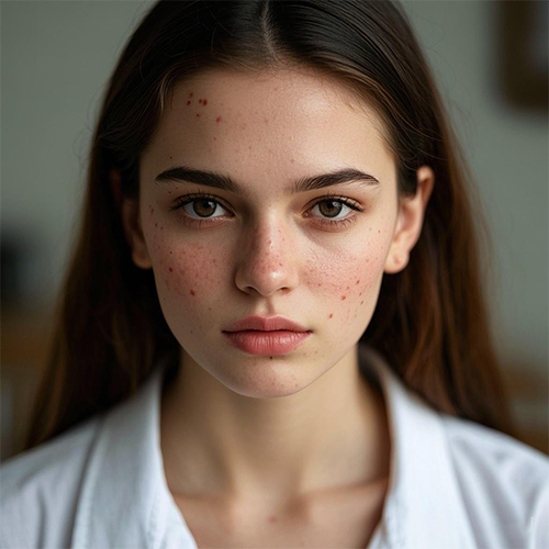 這是皮膚分泌的皮脂較少導(dǎo)致的毛囊導(dǎo)管角質(zhì)化異常,導(dǎo)管口細(xì)胞粘性增加,形成角栓堵塞,導(dǎo)管空隙變得狹小或完全堵住,導(dǎo)致皮脂腺分泌的皮脂排不出,形成痘痘。