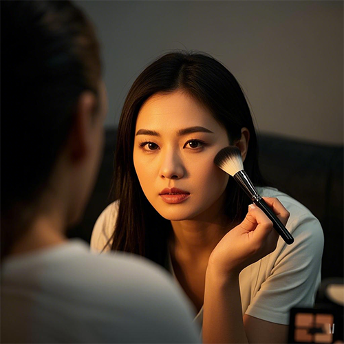 蜜粉也稱定妝粉,理論上是用在末尾讓妝面柔和,也可讓肌膚顯得無(wú)暇。但是如果腮紅、高光上的淡,還是可以用在蜜粉后的。一般腮紅和高光部位不同,次序相同;但也可以將高光疊在腮紅上